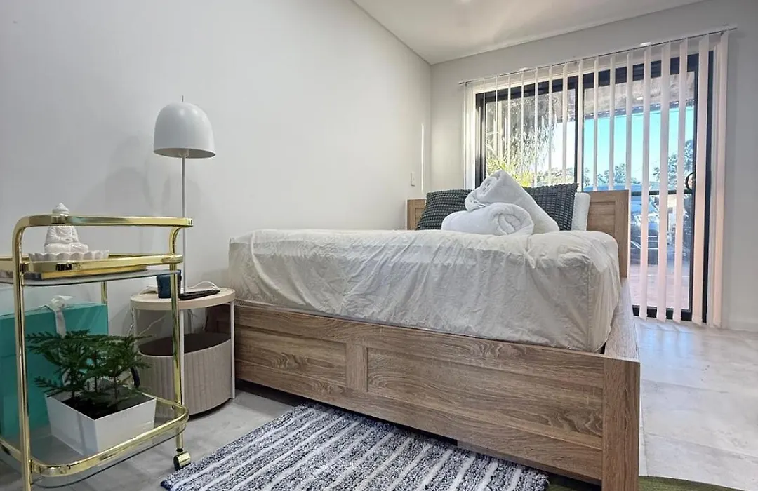 La villa Fully Equipped Brand New Built Studio incluye una zona de comedor con hervidor eléctrico, nevera y menaje de cocina. Esta villa está a tan solo 1 km del restaurante Rashays Carramar, donde los huéspedes pueden disfrutar de diversas comidas. La villa Fully Equipped Brand New Built Studio está a unos 10 minutos a pie de la parada de autobús The Horsley Dr opp Tuncoee Rd y a un corto paseo de la estación de tren Sydney Carramar.